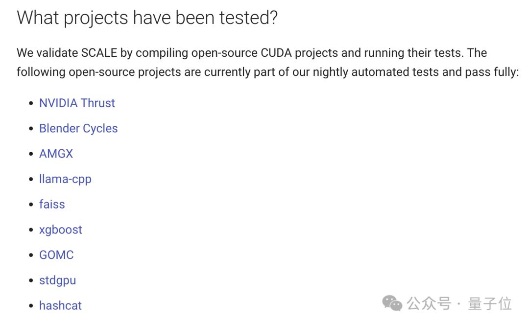 而且开发者也明确表示有一些CUDA API和功能并不被支持,但也没有给出具体的列表。
