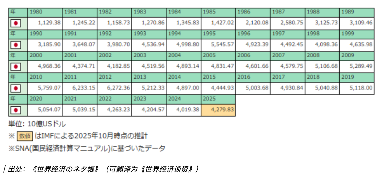 换句话说,过去三十多年,日本列岛既不坚韧,也不繁荣,在经济规模上从仅次于美国,退到了中国(2010年超过日本)、德国(2023年超过日本)之后,而且今后很有可能将被印度超过。