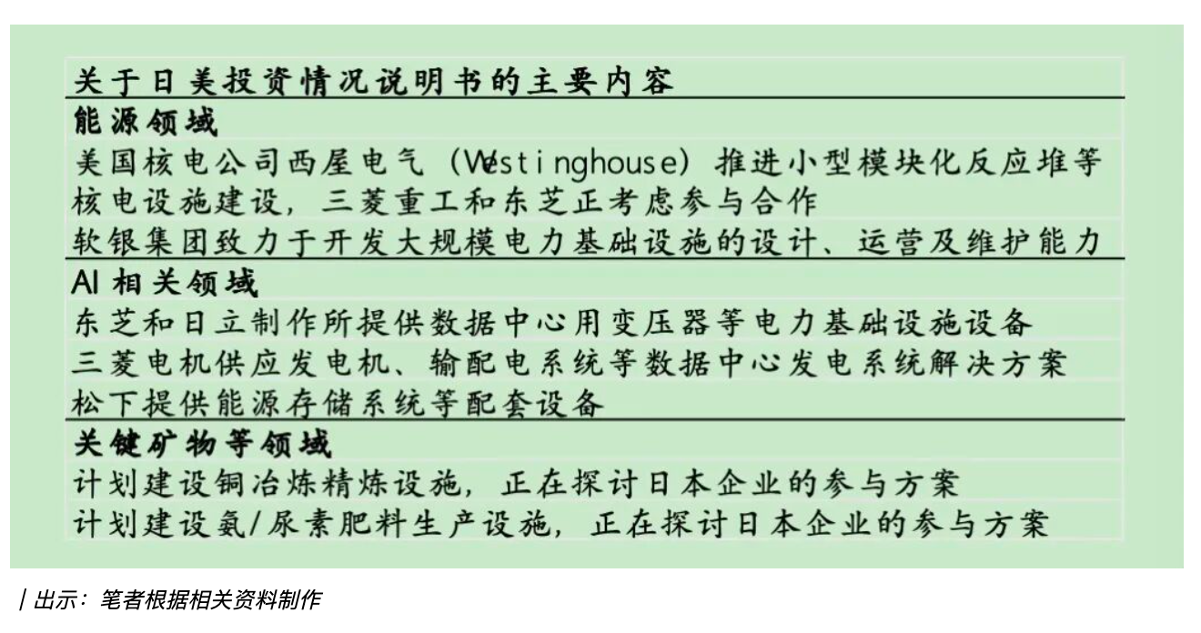 根据日美签署的“关于对美投资的谅解备忘录”,投资目的地将经过日美设立的“磋商委员会”,以及由美国商务部长担任主席的“投资委员会”的讨论,并由美国总统同意后选定,决定权在美国。参与投资的日本企业可以获得日本政府系统的金融机构的贷款或贷款担保。