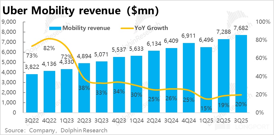 1、网约车还算不错,外卖则是 “实打实的” 强:本季网约车(Mobility)业务的订单额同比增长 20%,环比大幅提速 4pct。但剔除汇率的影响后,实际仅环比提速了 1pct 了。没有咋看之下那么强劲。