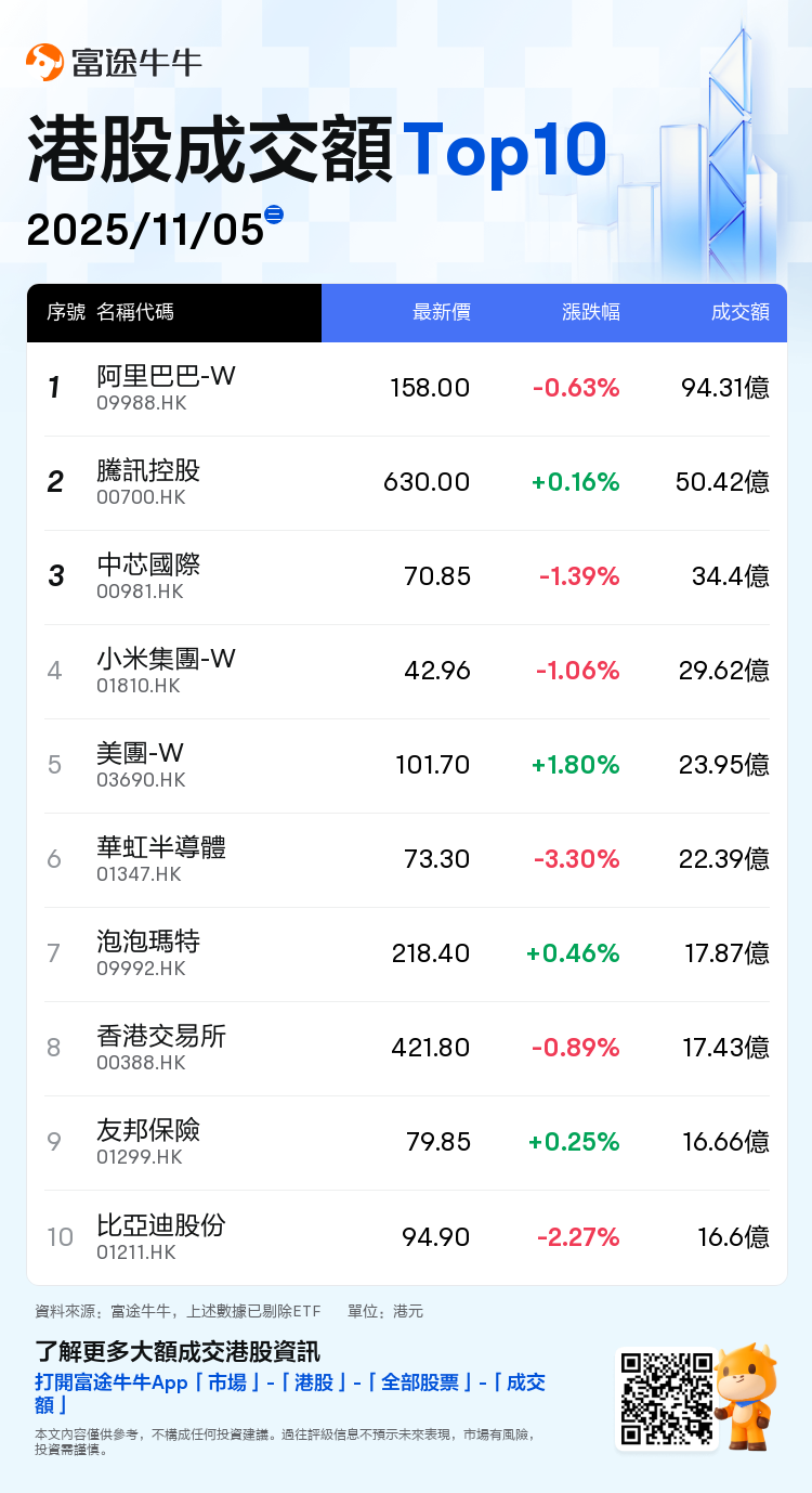 截至午间收盘,港股上涨604只,下跌1326只,收平1285只。