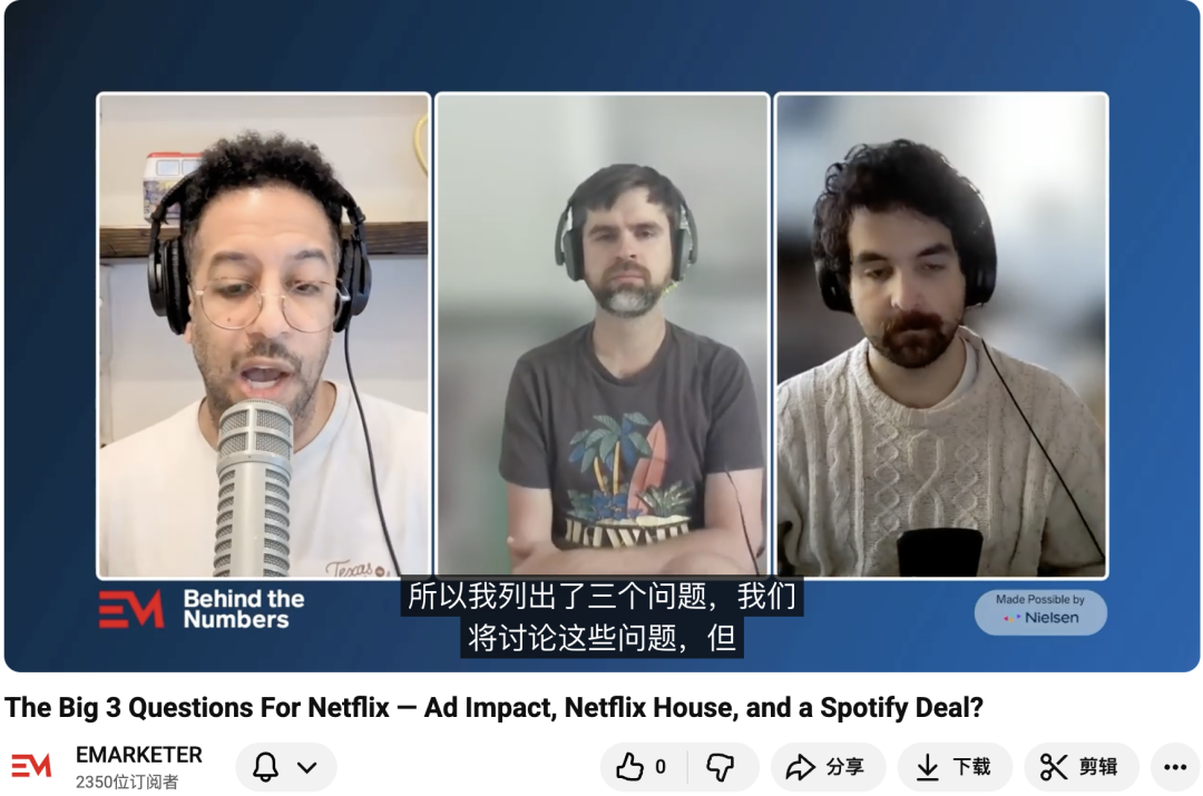 今天听了eMarketer的一档播客,讲的是Netflix最近的几个动作。
