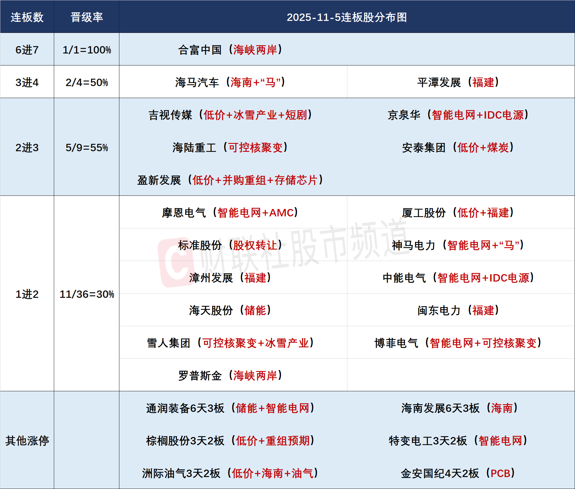连板晋级率升至57.14%,最高标合富中国以一字涨停晋级7连板,此前作为投机资金抱团核心的福建本地股持续站上风口,人气龙头平潭发展全天在涨停附近展开激烈换手,最终仍实现连板晋级,带动板块内补涨品种不断涌现,厦工股份等多股晋级2连板,并带动另一大地域板块的海南自贸概念热度同步升温。不过昨日逆势爆发的“马字辈”股今日多数展开回调,今日指数的低开高走展开修复并不利于例如玄学炒作的纯投机炒作,关注已经进入重点监控名单的平潭发展后续能否继续扛住分歧。