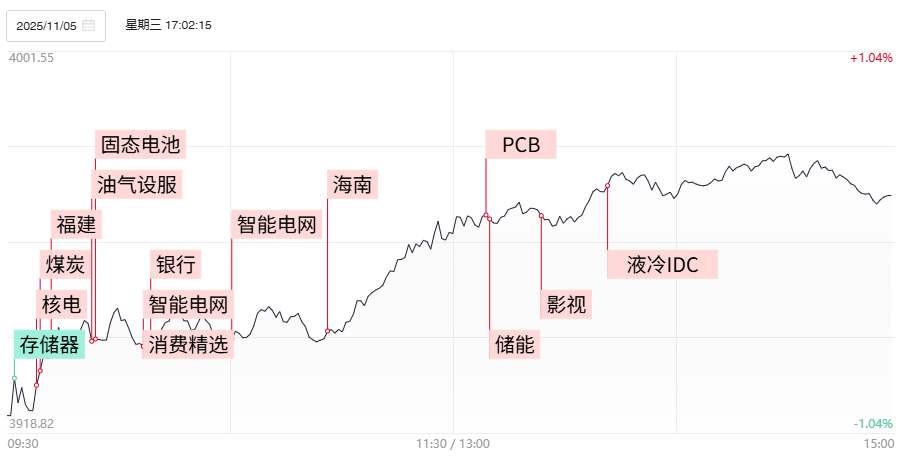 近期英伟达在GTC大会上预计将出货2000万块Blackwell芯片,Blackwell和Rubin芯片合计销售额5000亿美元。算力硬件端局部展开修复,其中受益明年量产的Rubin系列的M9材料为首的PCB概念午后展开反弹,覆铜板概念金安国纪和PCB微钻针概念股中钨高新双双涨停,南亚新材、嘉元科技也双双涨近10%。在上游铜箔、电子布等价格持续看涨背景下,CCL价格上调并带动业绩高弹性仍是大概率事件。此外液冷概念股淳中科技一度触及涨停创出历史新高。反映整个算力硬件端的修复仍处于局部细分的高弹性小票为主,其进一步展开普涨修复仍有难度。