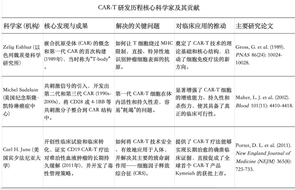 表1 CAR-T疗法研发历程及核心科学家。作者整理