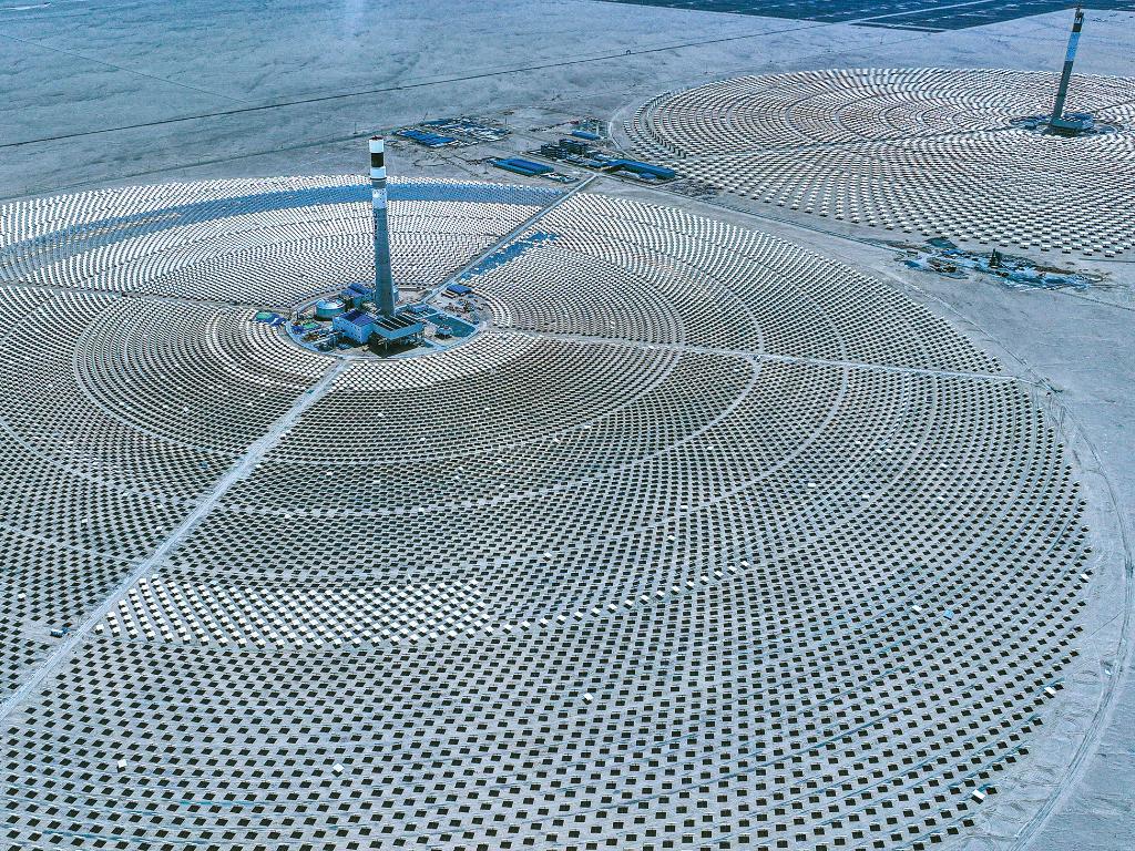 如今,烈日下,连绵的光伏板如同一片蔚蓝海洋,覆盖无垠黄沙;劲风中,风力发电机的巨翼缓缓旋转,在沙漠中筑起一片“白色森林”;更有那巍然屹立的光热塔,发出耀眼光芒……昔日的沙漠、戈壁、荒漠摇身一变,成为能源“新粮仓”,柴达木盆地迎来新能源时代的繁荣。