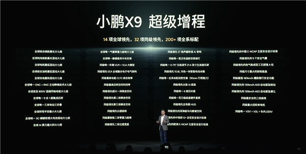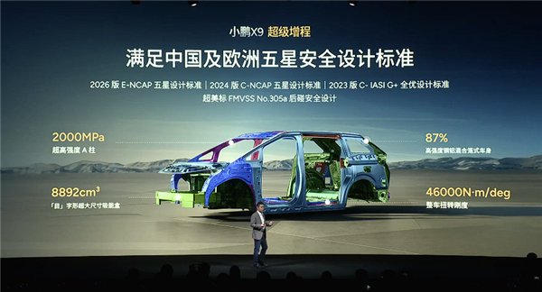小鹏X9鲲鹏超级增程版已开启预售,提供Max和Ultra两个版本,售价区间为35-37万元。这款大型七座MPV车身尺寸为5316*1988*1785mm,轴距3160mm。新车外观设计充满赛博未来感,内饰则营造出豪华氛围,采用T字形布局,并配备100%软包覆和进口实木装饰。内部为2+2+3七座布局,第二排座椅支持“零重力”模式、按摩、通风和加热。X9增程版延续了纯电版的大空间优势,全球首创三排座椅电动折叠收纳,最大化使用空间。安全方面,新车满足中欧五星安全标准,关键部位采用2000MPa超高强度钢。核心亮点在于小鹏鲲鹏超级增程系统,配备60升大油箱和63.3度大电池,CLTC纯电续航452公里,综合续航达1602公里。支持5C+800V超充,并搭载第三代1.5T发动机,即使亏电也能维持150km/h巡航。
