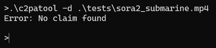 As can be seen above, the video is prominently watermarked with a visible Sora watermark. However, I can't find any invisible C2PA data attached, as is claimed to exist by OpenAI.
