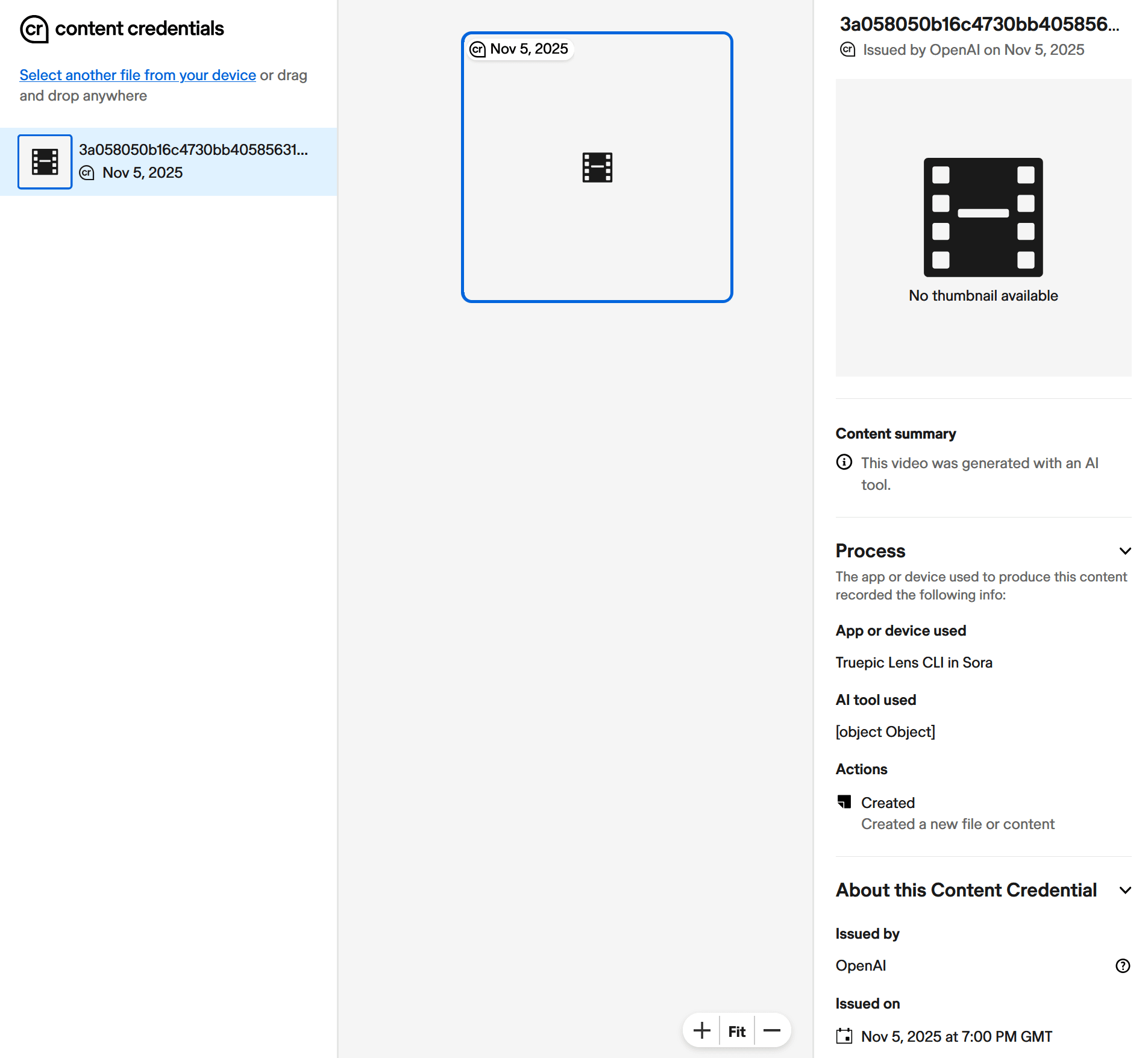 Disclaimer: The claims in this post are "to my knowledge", and I am not a cyber-security or cryptography expert. All claims are made according to the results of my testing using the Content Authenticity Verify and C2PA-rs tools. These tests were performed on videos downloaded using the Sora 2 web interface on Windows Desktop.