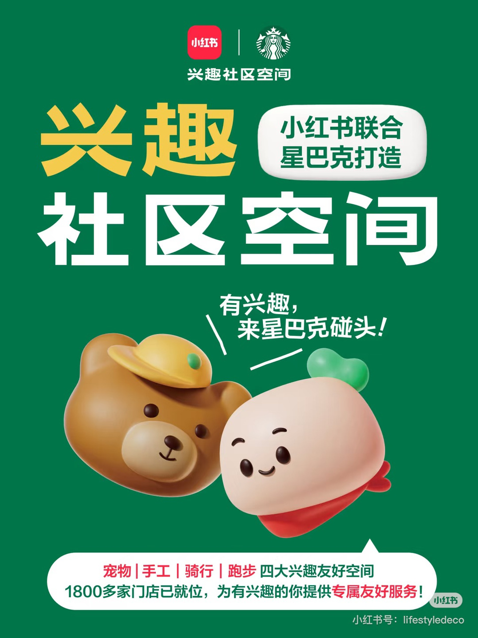 星巴克不会脱离购物中心,但可以在中国市场可以尝试寻找新的空间氛围定位。一个信号是,星巴克中国在携手小红书APP,将全国1800余家门店升级为宠物、手工、骑行、跑步四大主题的「兴趣社区空间」,通过服务兴趣社群,来强化社交、社区连接点的定位。