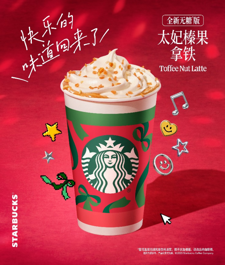 昨日,星巴克还宣布由中国团队研发的无糖及甜度可选的太妃榛果拿铁,在全球范围内首次登场。