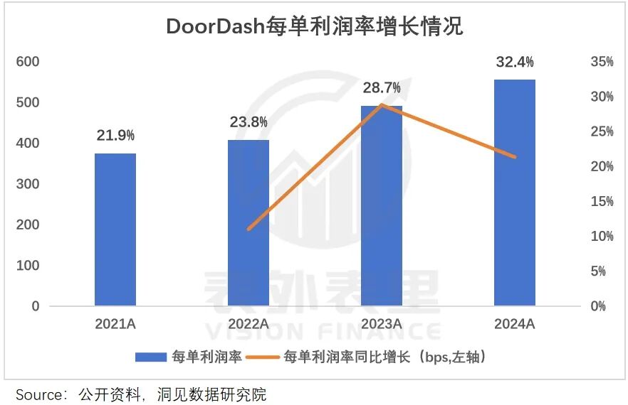 一步步谋划之下,DoorDash把餐饮配送做成了一项高毛利、服务型的业务。2024财年,其平均每10美元的订单,能挣3.2刀。