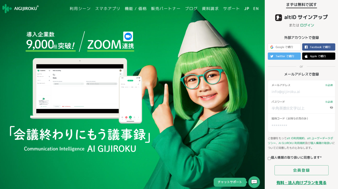 AI GIJIROKU——Alt的王牌产品,一个会议记录AI系统。它可以实时将会议对话录音转写为文字,并自动生成会议纪要。据官网,AI GIJIROKU支持Zoom等视频会议平台集成,具备高精度的语音识别和发言者识别功能,可提供多达30种语言的实时翻译。通过这套系统,Alt表示其将“让会议结束的瞬间已经有了会议纪要”的愿景成为可能。