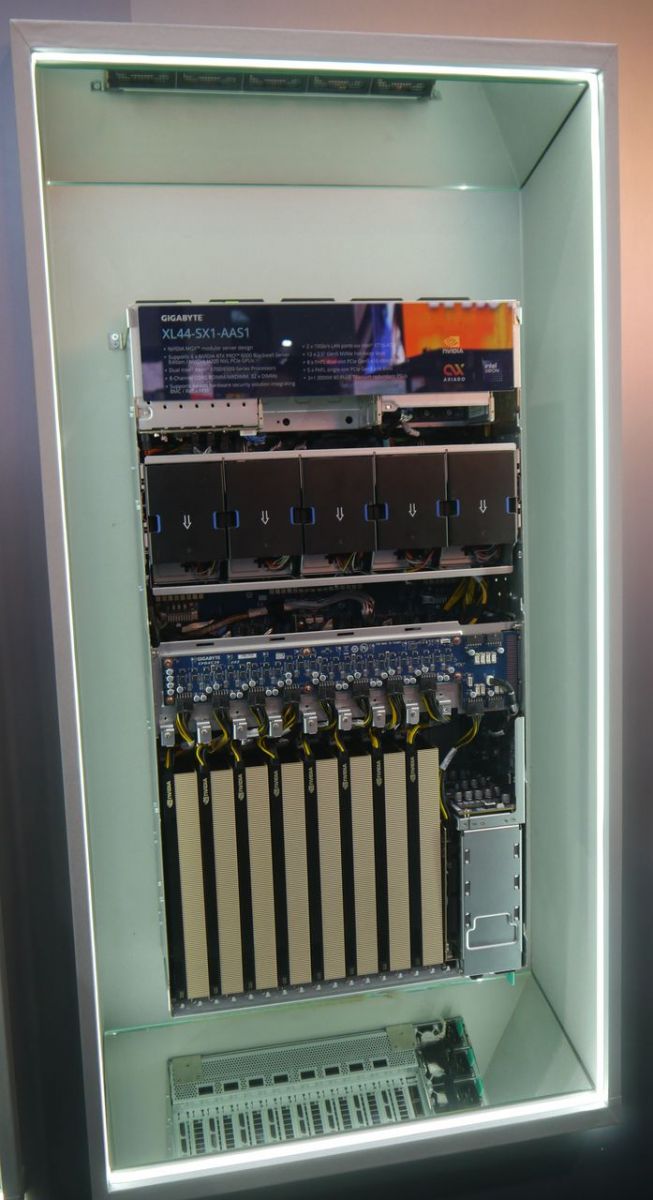 在10月底舉行的GTC華盛頓特區大會,技嘉XL44-SX2-AAS1登上主題演講舞臺,Nvidia共同創辦人暨執行長黃仁勳展示Omniverse電腦時,也特別將技嘉這款8-GPU伺服器,作為企業發展數位雙生、AI機器人模擬應用的代表產品,強調可提供強大的生成式AI與電腦圖形處理效能。