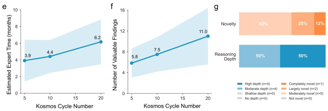 有人类科学家评估后发现,它20轮的研究成果就相当于人类团队6个月的工作量,而且研究轮次越多,有价值的发现也越多,真不搞无效内卷。