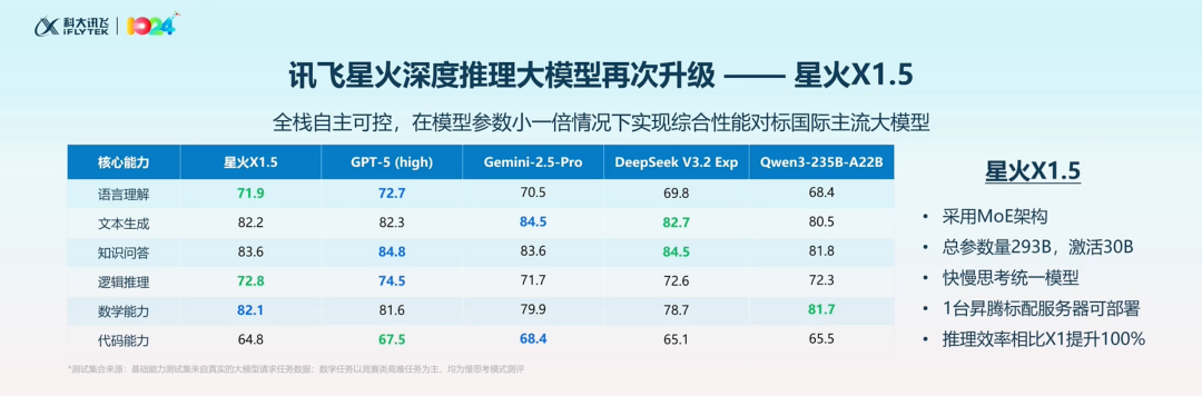 基于MoE架构的星火X1.5,总参数293B,激活参数30B。