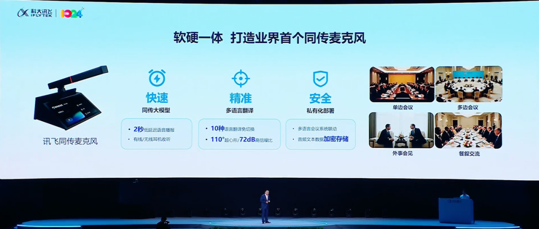 不仅如此,讯飞还打造了业界首个同传麦克风,不仅可以进行实时同传翻译,而且还可收听翻译语音,时延低于2s。