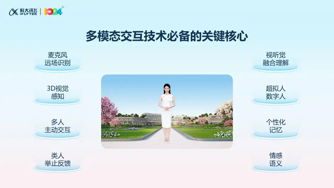 麦克风远场识别、3D世界感知、多人主动交互、类人举止反馈、视听觉融合理解、超拟人数字人、个性化记忆、情感语义。