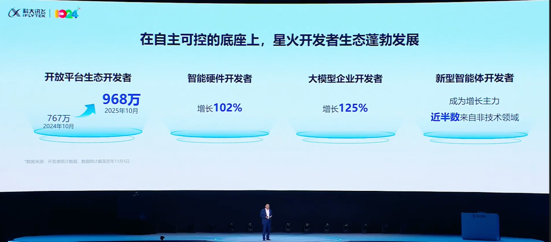 过去一年,开放平台的开发者增长了200多万,其中增长最快的是智能硬件开发者、大模型企业开发者。