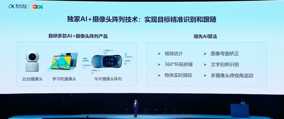 此外就是「看」,讯飞的自研AI摄像头阵列产品能够实现目标的精准识别和跟随。