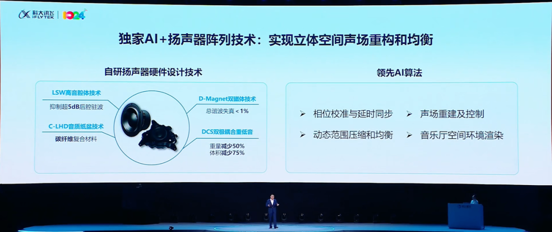 讯飞的AI+扬声器阵列技术,可以说实现立体空间声场重构和均衡。