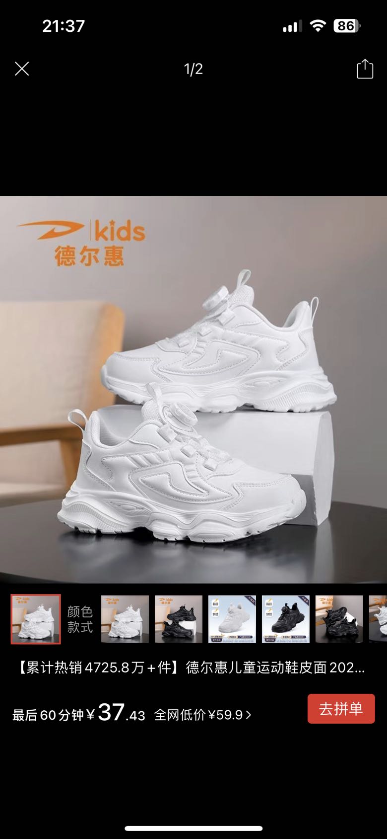 德尔惠 儿童运动鞋皮面2025新款秋季旋转扣防滑轻便耐磨男童跑步鞋[经销商] 拼多多[产品售价] ¥37.43元进入购买[#zolsplit_ecb电商推广区域分隔符结束#]
