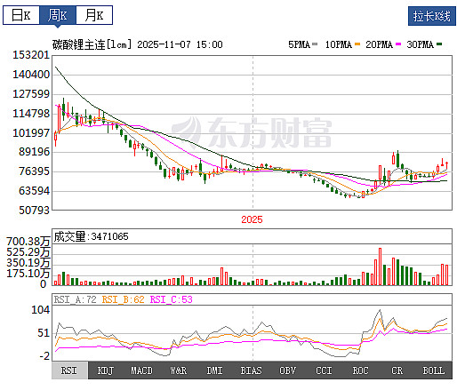 首先翻了翻碳酸锂的期货图,目前已经站稳8万平台。基本面反映在K线里面,周K、月K都是底部反转的结构,碳酸锂期货可能是月线级别的行情。