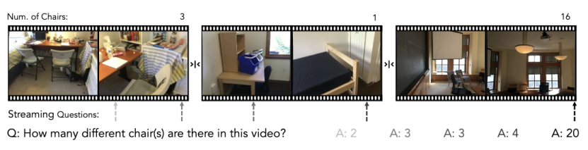 而许多被标榜为“空间推理”的任务,实际上可以通过文本捷径绕过视觉理解来完成。例如,在 VideoMME 基准的所谓空间推理子类别中,一个关于月球撞击地球的问题,本质上只需要物理常识而非视觉空间理解;另一个关于宇航员装备的问题,更像是在考察模型对 NASA 相关文本知识的记忆。为了弥补这一评测空白,团队构建了 VSI-SUPER 基准测试,“VSI”代表视觉-空间智能(Visual-Spatial Intelligence)。这个基准包含两个子任务:VSR(Visual Spatial Recall,长时域视觉空间回忆)和 VSC(Visual Spatial Counting,持续视觉空间计数)。两个任务都使用长达数小时的视频内容,要求模型不仅要“看见”,还要“记住”并“理解”空间中物体的变化。