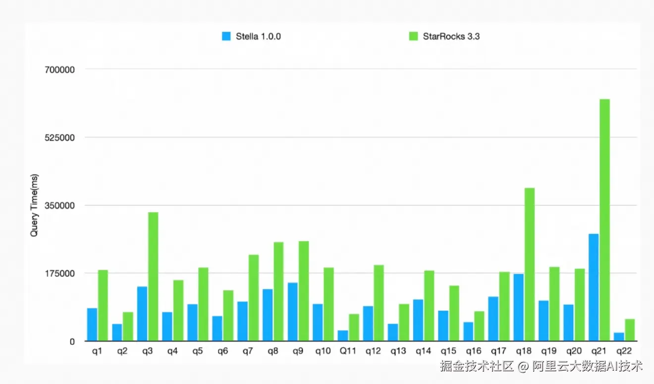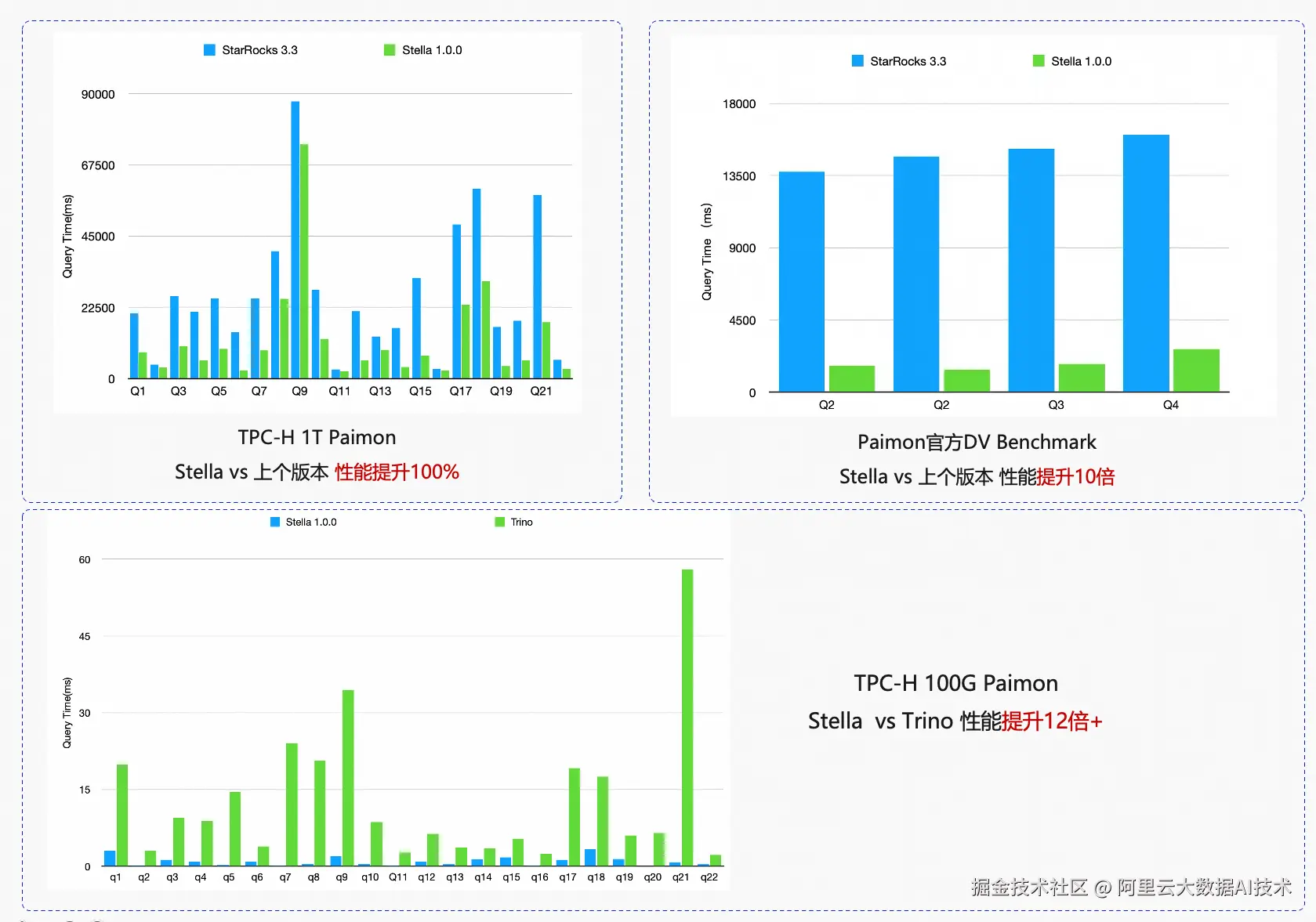 Stella在Lakehouse场景下查询Paimon下性能的提升也非常明显: