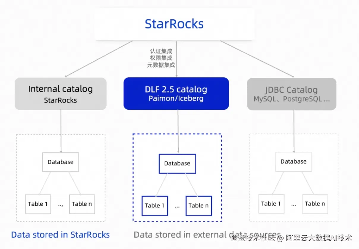 通过与Data Lake Formation的深度集成,用户只需简单创建catalog即可访问DLF中的数据表,权限配置在DLF中即可自动同步至StarRocks,实现真正的即开即用。