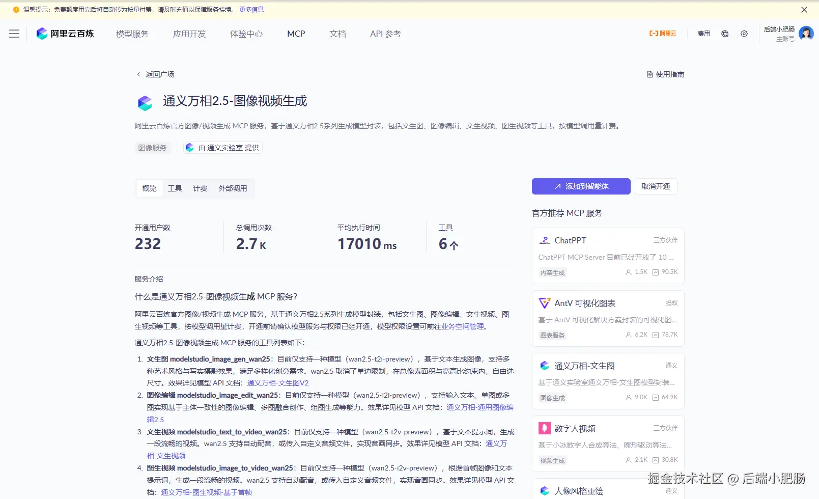 本 工作流 生图依托通义万相2.5 MCP Server,故需要去对应网站开通服务。