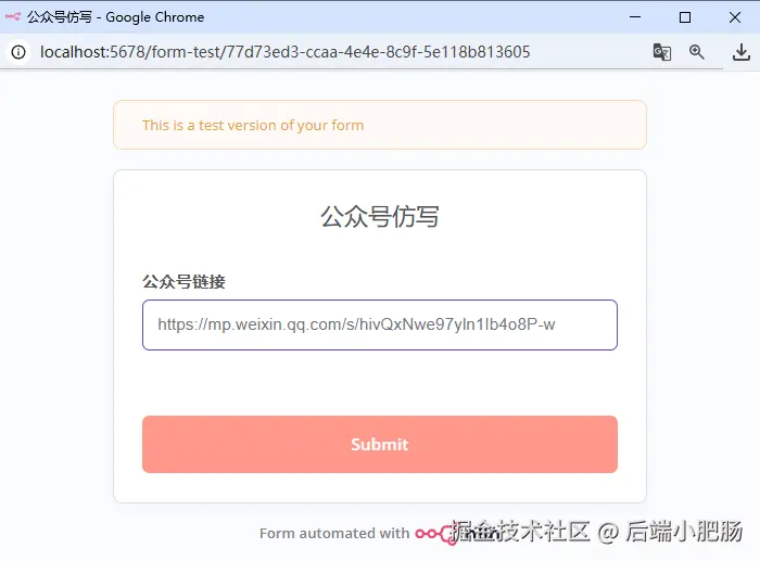 在弹出的表单中输入对标文章链接,点击【submit】按钮。