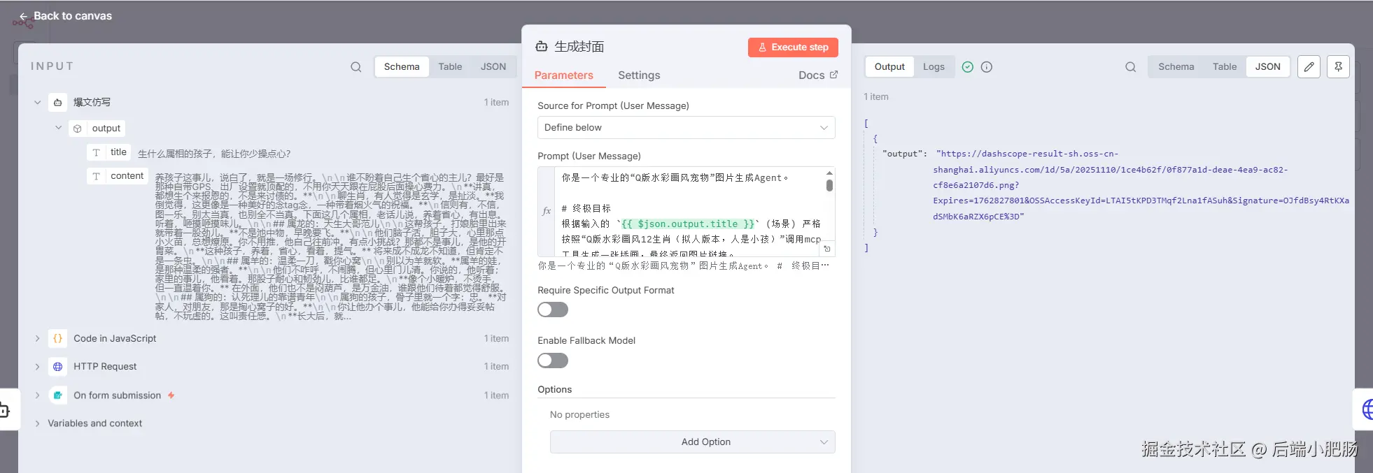 在 新文 里我没做配图,因为Coze之前做过同样功能的 工作流 ,大家都反应想自己配图,所以在n8n这边就省略了工作流配图的步骤。对这个工作流感兴趣的读者赶紧码住跟练哦~