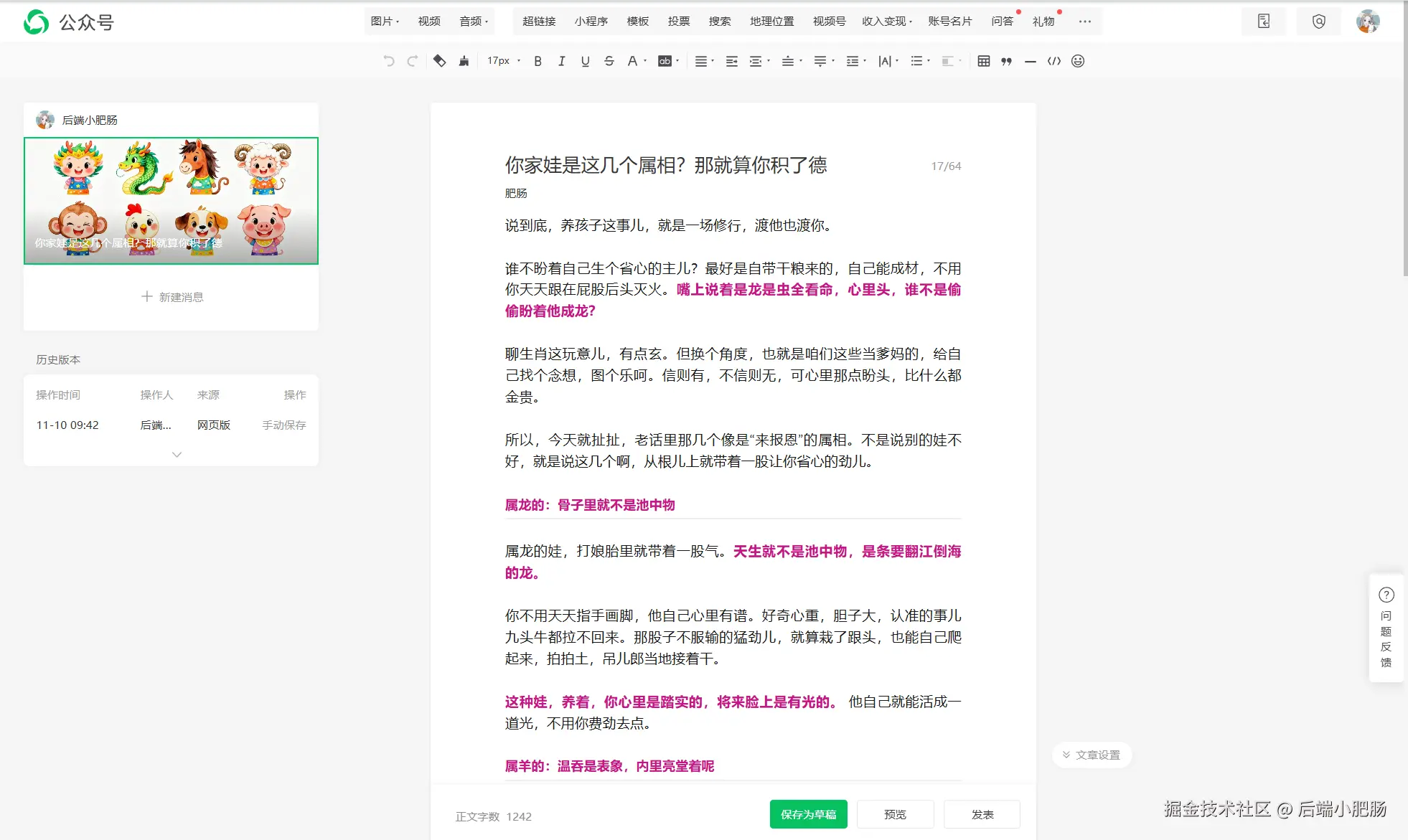 等待几秒后新的文章就会出现在我们的公众号草稿箱中。