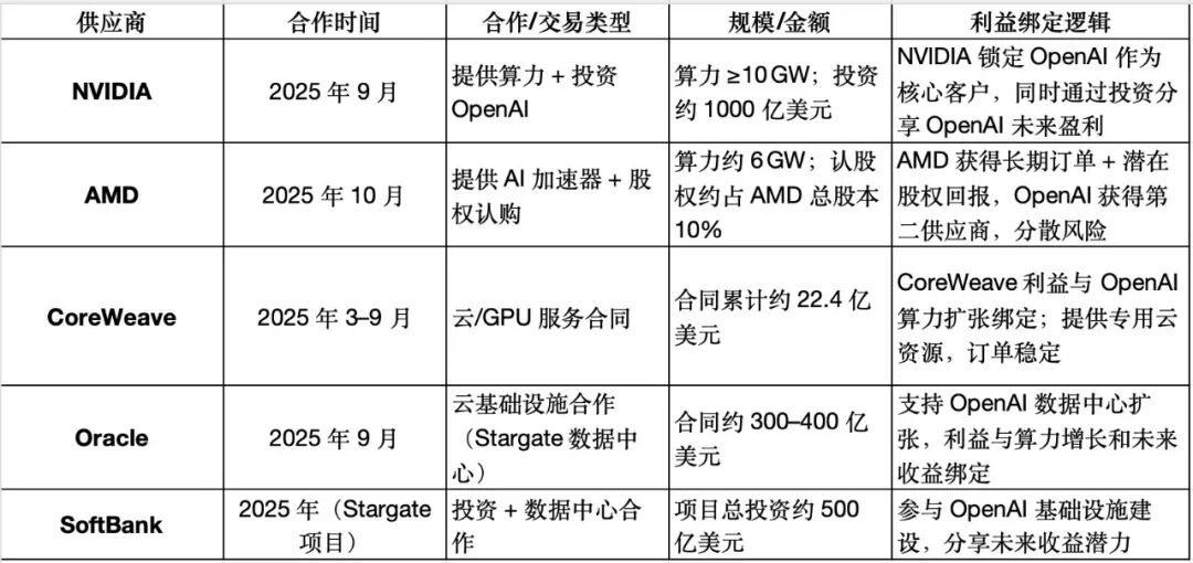 也就是从9月以来,一个个跟OpenAI相关的大单新闻令人眼花缭乱——OpenAI宣布了与甲骨文3000亿美元的合作协议、与英伟达1000亿美元的投资、与AMD部署6吉瓦GPU的战略合作,以及与博通部署10吉瓦定制AI芯片的战略合作。