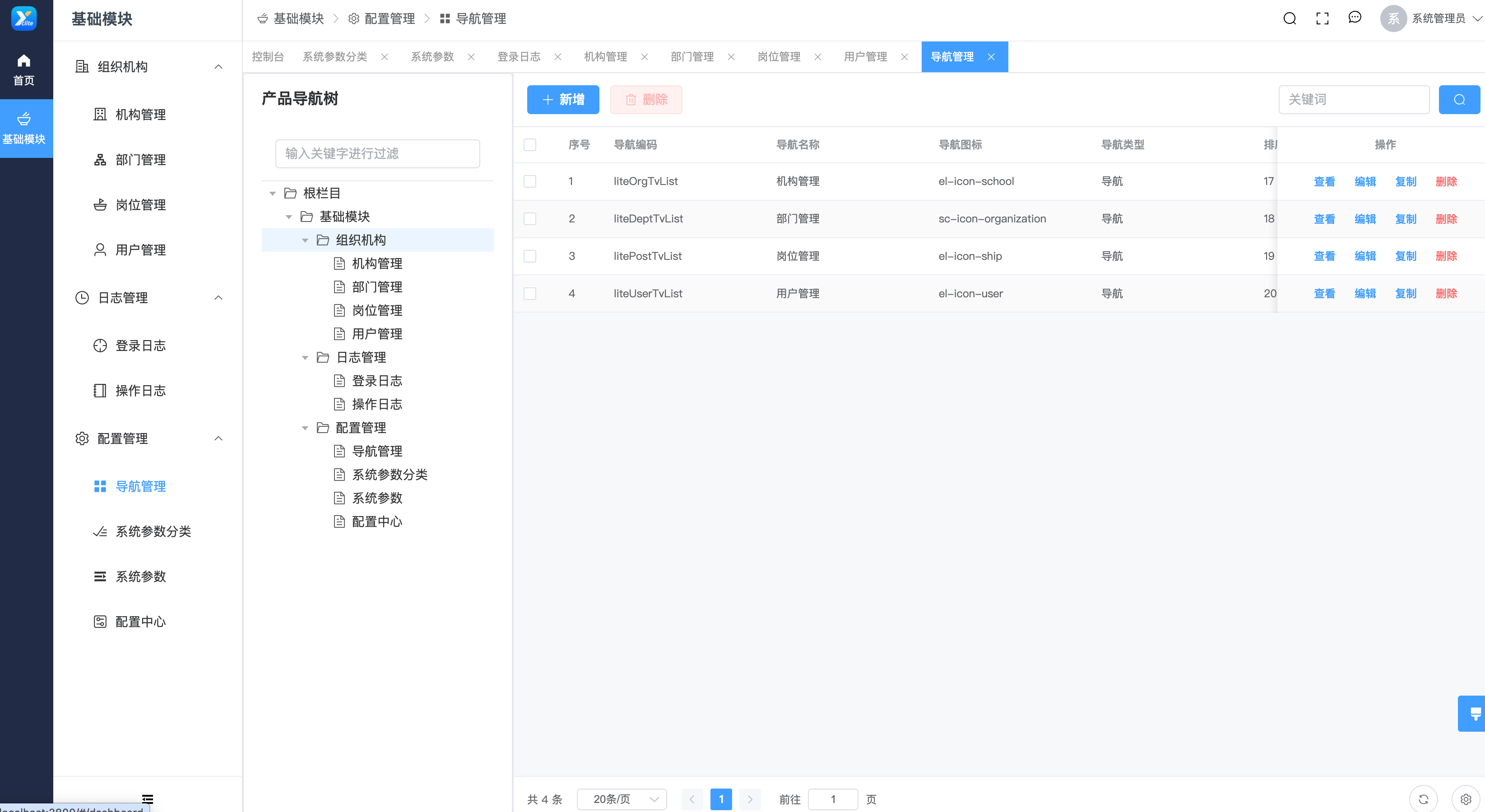 - 基于JFinal 5.x框架,继承其高性能特性 提供开箱即用的管理后台,简化项目初始化流程 集成完整的用户管理、组织架构、系统配置等基础功能模块