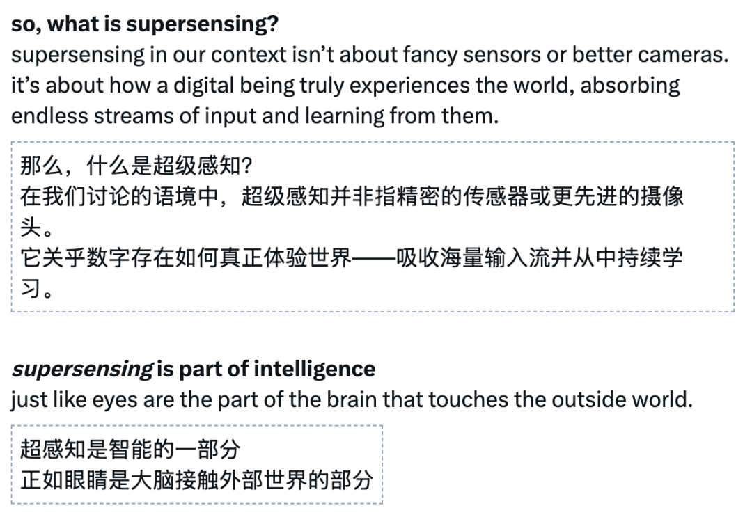 谢赛宁在博客中表示,在构建出「超感知」之前,不可能真正构建出「超级智能」。