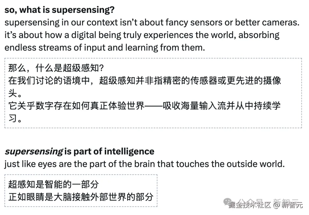 谢赛宁在博客中表示,在构建出「超感知」之前,不可能真正构建出「超级智能」。