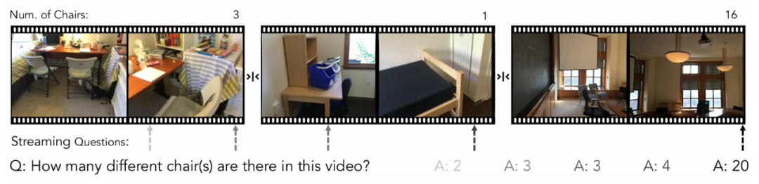 测试 MLLM 在长篇空间视频中持续积累信息的能力。为了构建 VSC,研究者拼接了来自 VSI-Bench 的多个房间游览视频剪辑,并要求模型计算所有房间中目标物体的总数(见图 5)。