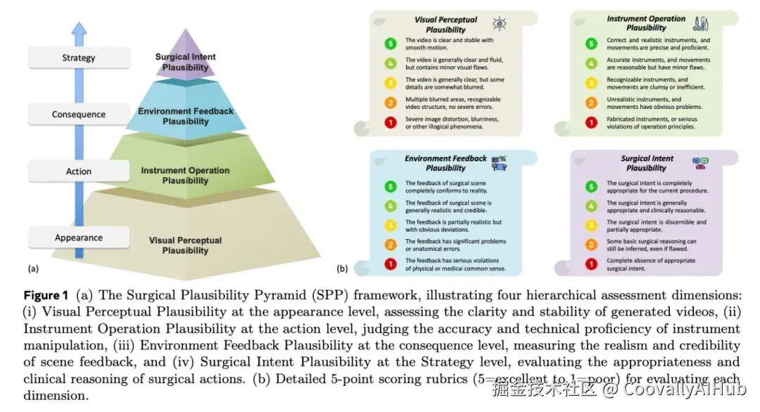 更重要的是,团队设计了一个新颖的四层评估框架——手术合理性金字塔,从四个层面系统评估生成内容的质量: