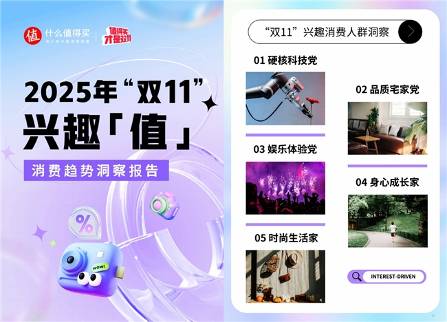 11月11日,“什么值得买”联合值得买消费产业研究院,正式发布《2025年“双11”兴趣「值」消费趋势洞察报告》(以下简称“报告”),报告揭示兴趣消费已成为当前“双11”市场增长的核心引擎,消费驱动逻辑已从“需求导向”转向“兴趣驱动”。