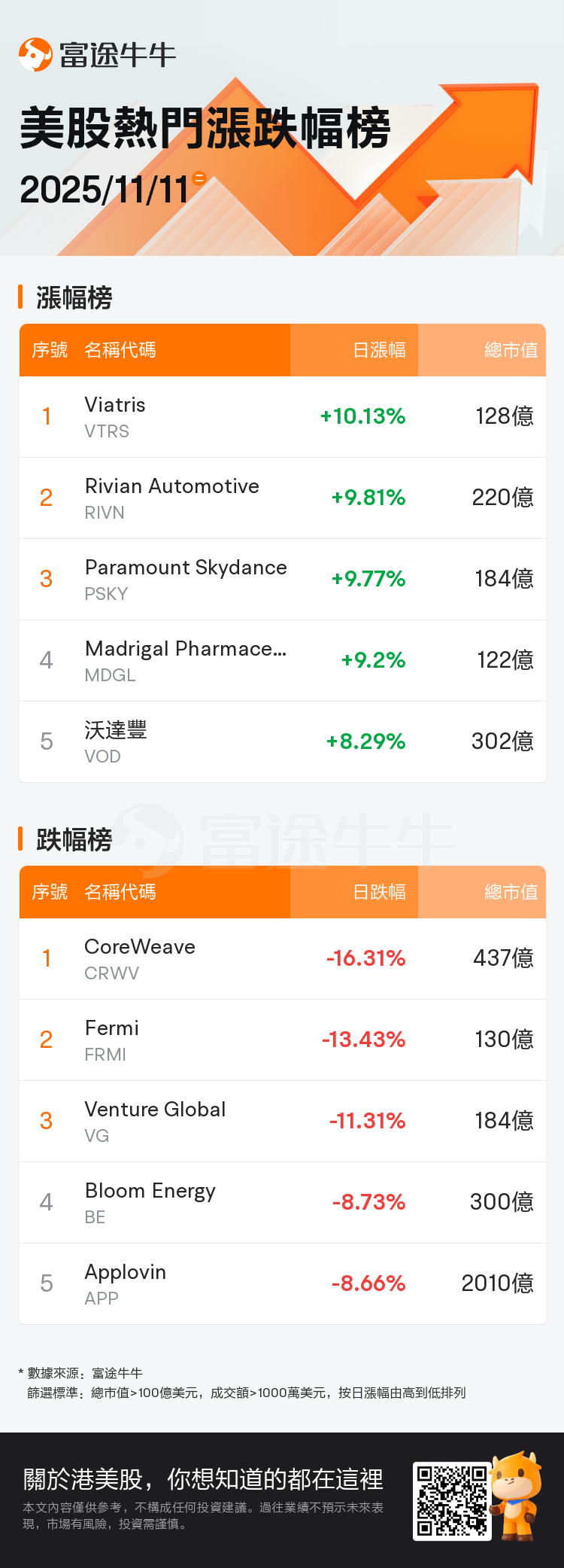 三、热门美股涨跌幅榜
