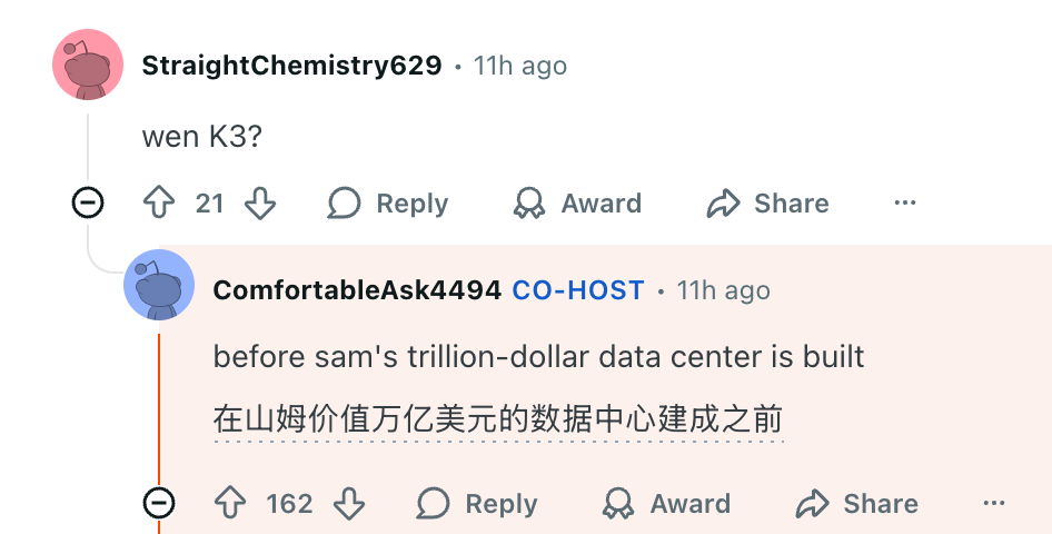 在此背景下,月之暗面团队在Reddit最活跃的AI社区LocalLLaMA进行了一场长达3小时的“回答一切”(Ask Me Anything)活动,吸引了近200条提问和数千条互动。