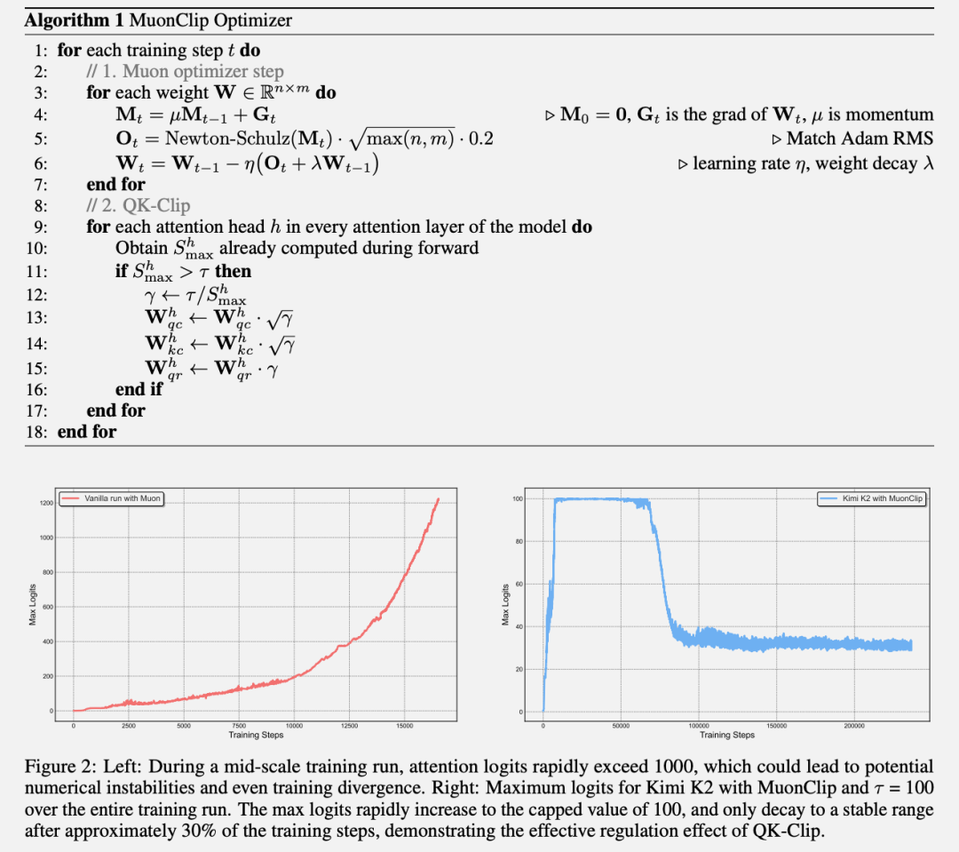 更关键的是工程创新。Kimi K2使用了团队自研的MuonClip优化器,能在训练过程中自动稳定梯度。