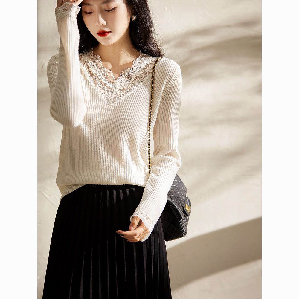 KELE COCO 100%羊毛蕾丝v领修身显瘦羊毛衫女新款长袖百搭气质毛衣[经销商] 拼多多[产品售价] ¥269.99元进入购买[#zolsplit_ecb电商推广区域分隔符结束#]