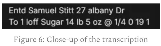 他看到Gemini把一行「To 1 loff Sugar 145 @ 1/4 0 19 1」的原文转写为「To 1 loff Sugar 14 lb 5 oz @ 1/4 0 19 1」。