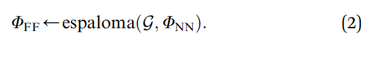 如图1所示,Espaloma类似于基于原子类型的力场操作,在其中化学感知被预定义以生成MM力场参数ΦFF。然而,Espaloma不是处理原子类型,而是使用图神经网络在化学图G上操作,该网络由神经网络模型参数ΦNN参数化: