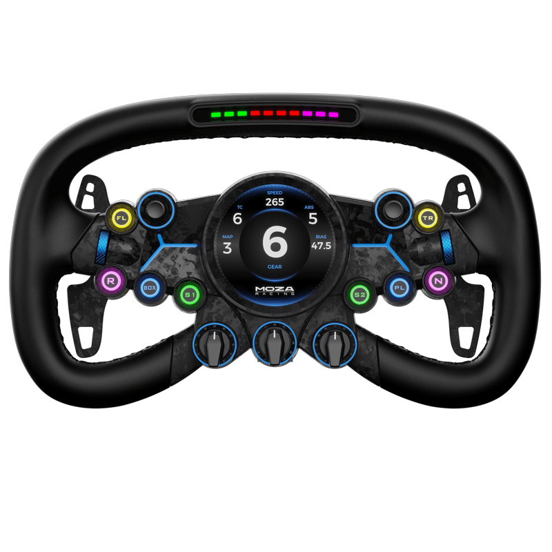 MOZA Vision GS 采用塞车方向盘设计,采用 310mm 标准 GT 方向盘尺寸;内置 2.85 英寸触控圆形显示屏,支持 60Hz 刷新率。