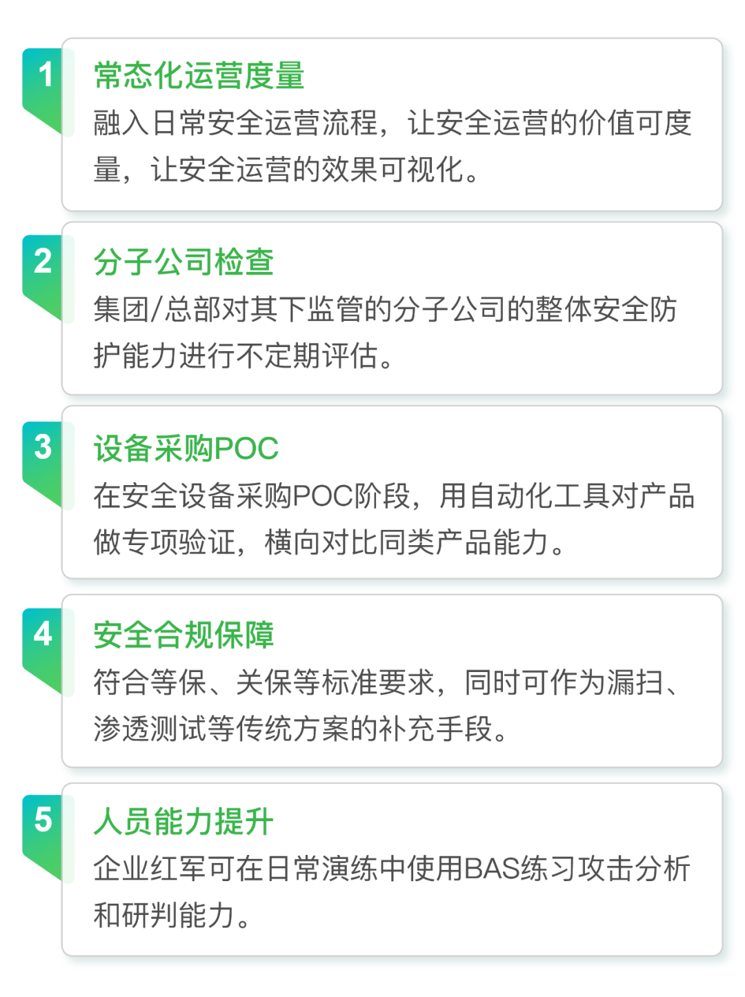 上述验证方式不同程度上存在着覆盖不全面、短时效性、人员能力不可控、难以重复验证等局限性,无法全面、客观、持续、自动化地验证企业的安全防御能力,验证后的防御体系仍然存在安全隐患。