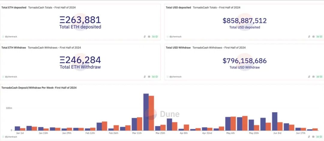 (Tornado Cash: https://dune.com/misttrack/first-half-of-2024-stats)